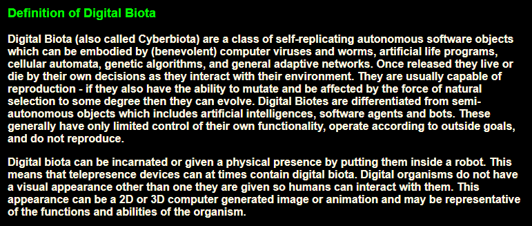 Biota.org es una organización que se encarga de realizar proyectos con el objetivo de crear ecosistemas artificiales inteligente.